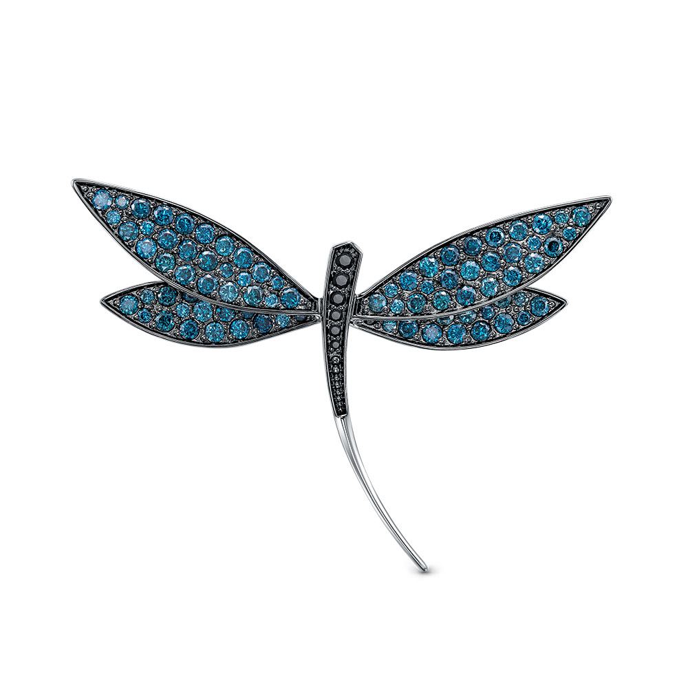 Брошь из белого золота с голубыми бриллиантами 144985