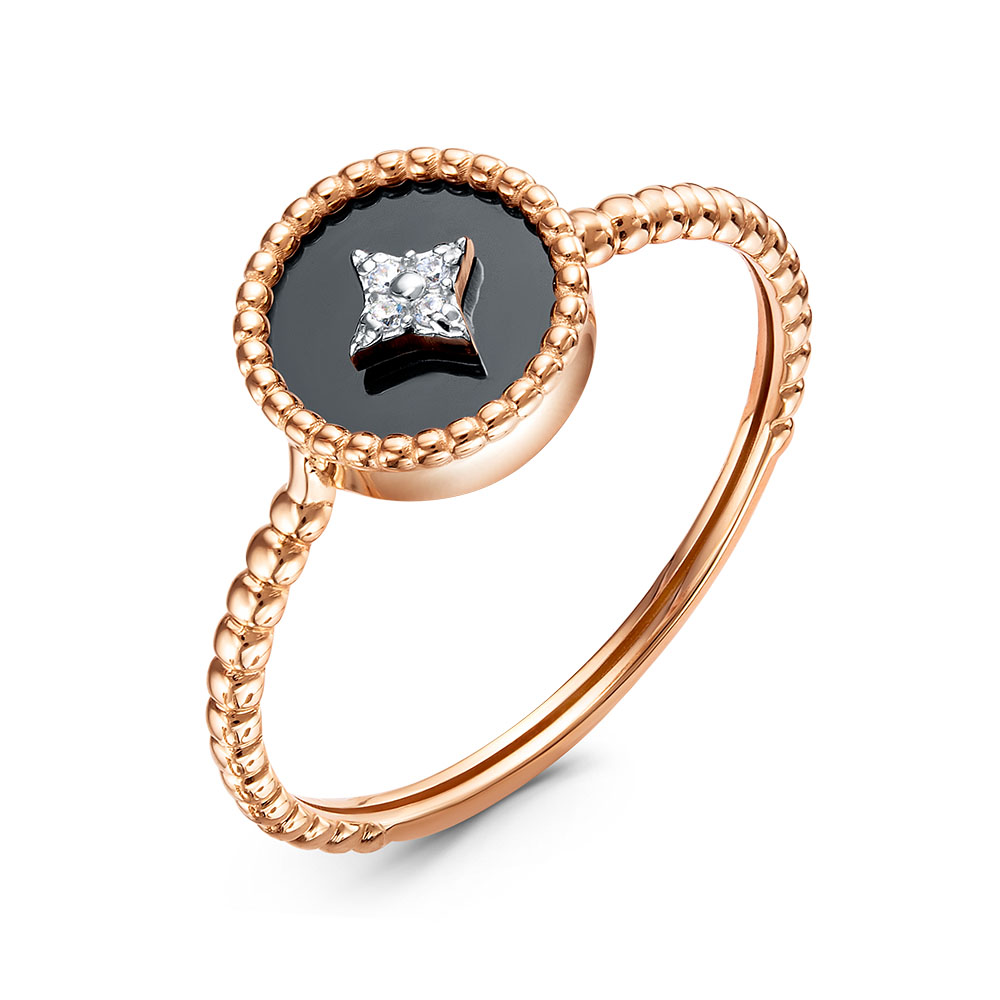 Кольцо из красного золота с фианитами и ониксом 147635
