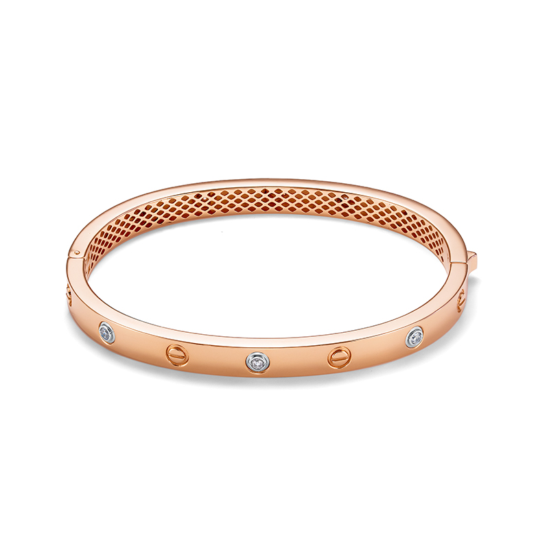 Браслет жесткий из красного золота с фианитами