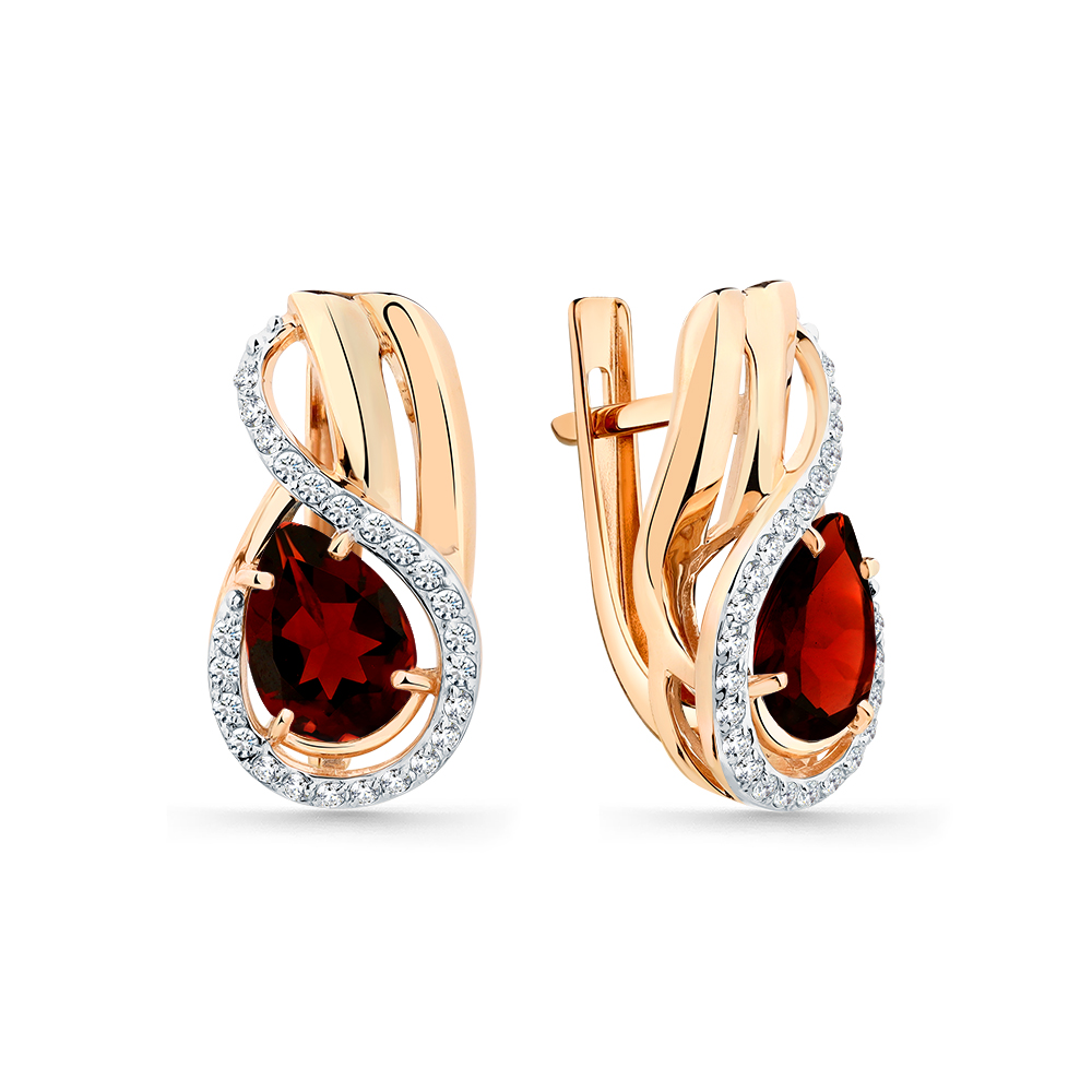 [NAME] => Серьги из красного золота с гранатом и фианитами