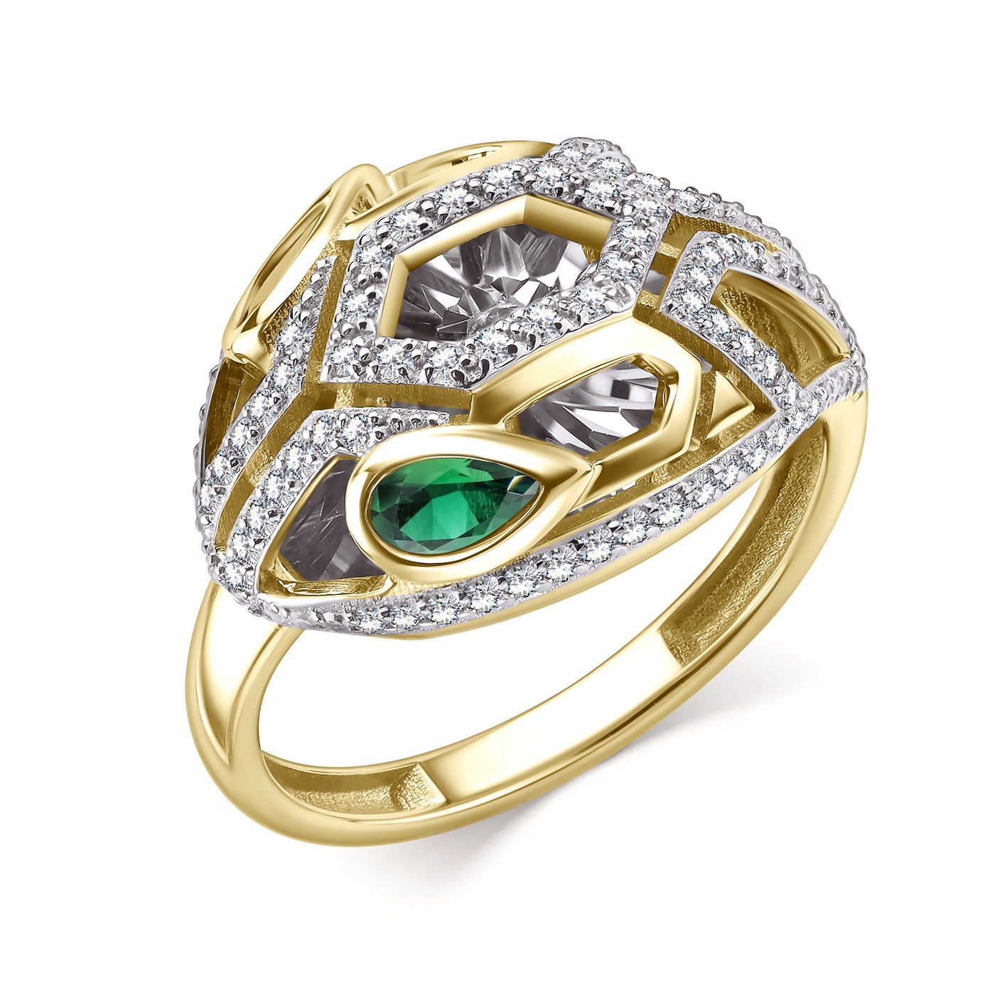 Кольцо из желтого золота с изумрудами и бриллиантами 151360