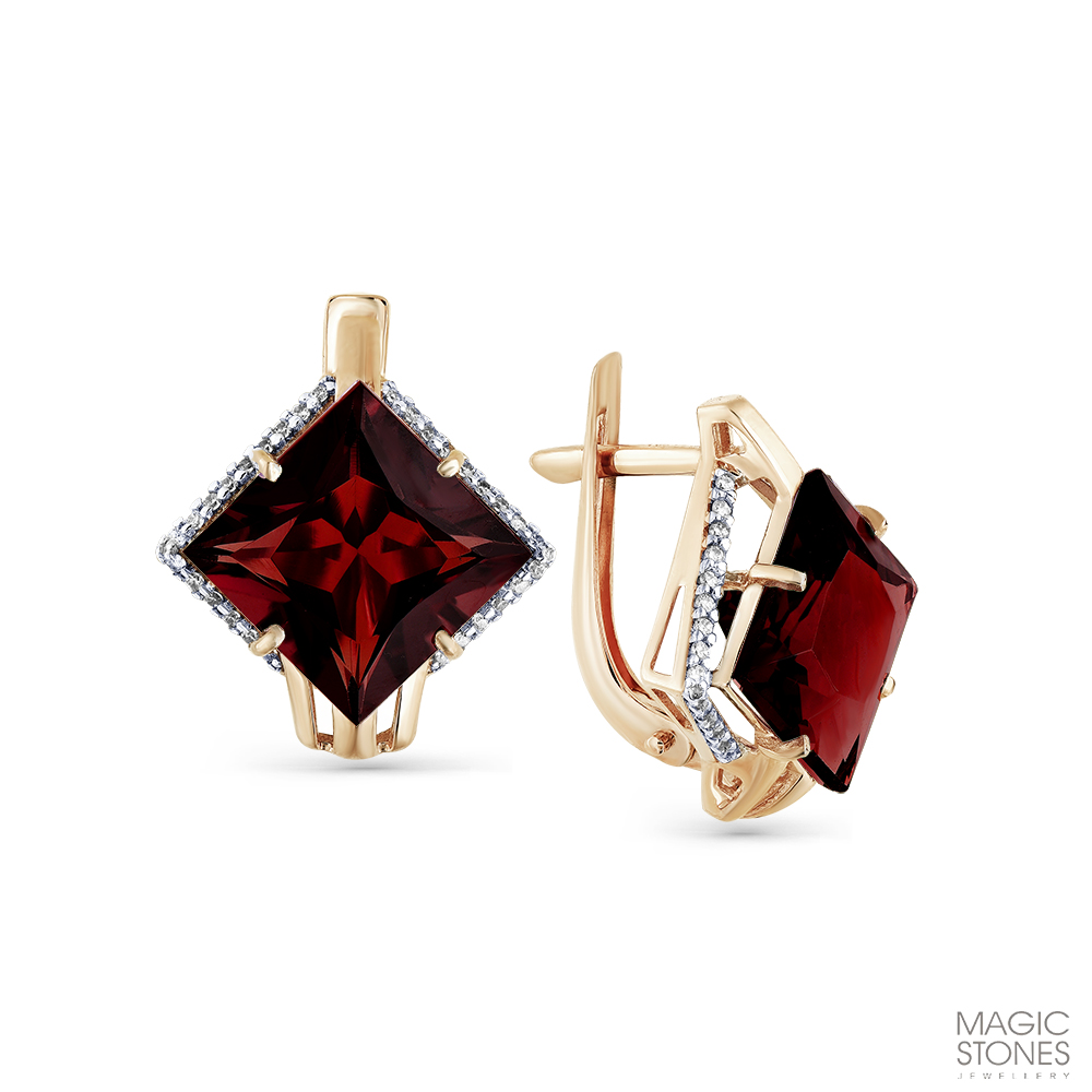 [NAME] => Серьги из красного золота с гранатом и фианитами