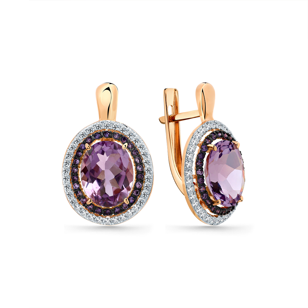 Серьги из красного золота с александритом и фианитами 151670